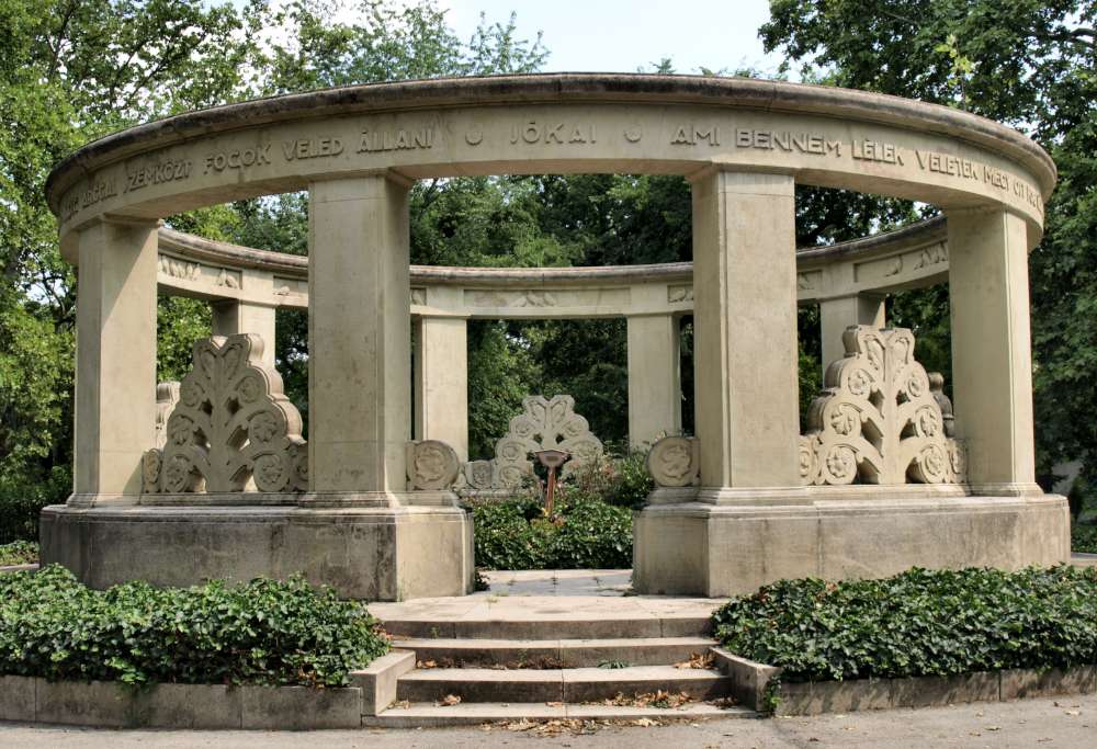 Örök nyugalomra a Kerepesi temetőben helyezték, 1904. május 9-én, délután, végső nyughelyére ezrek kísérték, a menet a Múzeum előcsarnokából indult. A királyt Apponyi udvarnagy képviselte, jelen voltak miniszterek, a parlamenti tagjai, a vármegyék és városok küldöttségei. Tizenkét szekér vitte a koszorúkat a halottaskocsi után. Többen is megemlékeztek róla a Múzeumban és a temetőben is, az utolsó beszédet Tuba János mondta, aki egy láda Komáromról hozott földet bocsátott le az író sírjába. Jókai első fejfáját saját háza kapufélfájából készítették, miképpen azt végrendeletében meghagyta. 1928-ban Kismarty-Lechner Jenő és Füredi Richárd tervei alapján épült köréje impozáns síremlék.